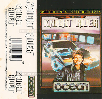 A série original do "O Justiceiro" (Knight Rider) [1982-86] foi um sucesso internacional, e claro que entre as toneladas de produtos de merchandising tinha que constar videojogos! No artigo que escrevi há uns anos para a Enciclopédia coloquei uma foto da adaptação das aventuras de KITT e Michel Knight para o NES. Hoje troco os cartuchos pelas cassetes e vou recordar o jogo para ZX Spectrum. Tenho um exemplar na minha magra colecção de videojogos, mas como infelizmente não tenho uma máquina para o experimentar socorri-me de vídeos do Youtube. Produzido pela "Ocean Software", "Knight Rider" para ZX Spectrum foi lançado no mercado em 1986.