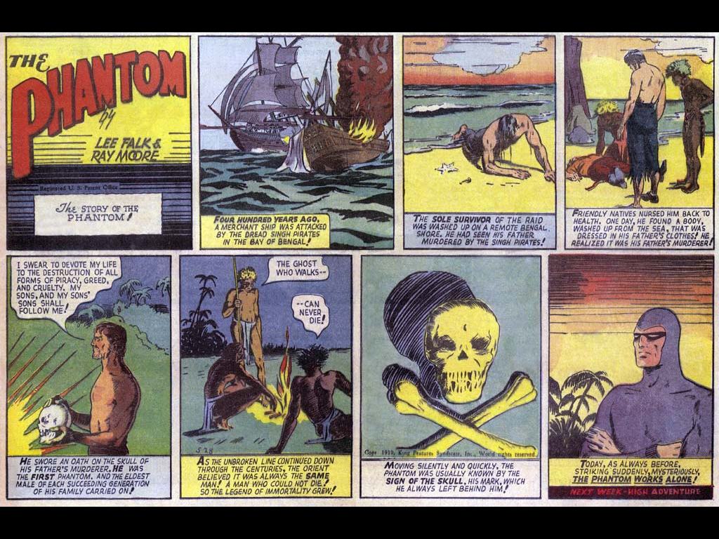 O Fantasma [The Phantom], "O Espírito que Anda", o herói criado em 1936 por Lee Falk [Leon Harrison Gross (1911-1999)], foi adaptado a diversos meios áudio-visuais, desde serials, a séries animadas e um filme em 1996. O Fantasma foi o primeiro herói da BD a usar um uniforme justo ao corpo, e a máscara sem pupilas, que se tornaram padrão em aventuras dos super-heróis posteriores. Desde o século XVI, o manto do Fantasma passa de pai para filho, alimentando a lenda que diz que o Fantasma é imortal. É recorrente ver no inicio das histórias a origem do Fantasma: